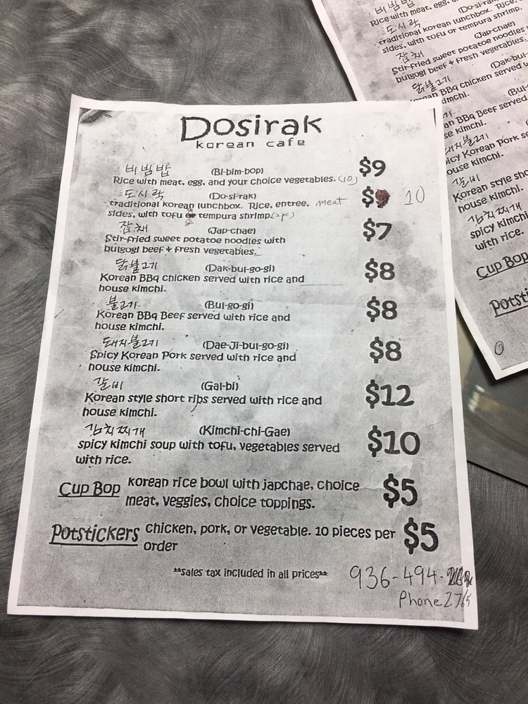 Welcome to Dosirak Korean Cafe, a charming culinary gem nestled in Conroe, TX, where authentic Korean cuisine is crafted with love and dedication. The menu is a delightful journey through Korean flavors, with highlights including the bulgogi and the savory kimchi soup, perfect for spice lovers. Diners rave about the chicken japchae bap and comforting mondoo soup, all made from scratch by the talented mother-daughter duo behind the cafe.